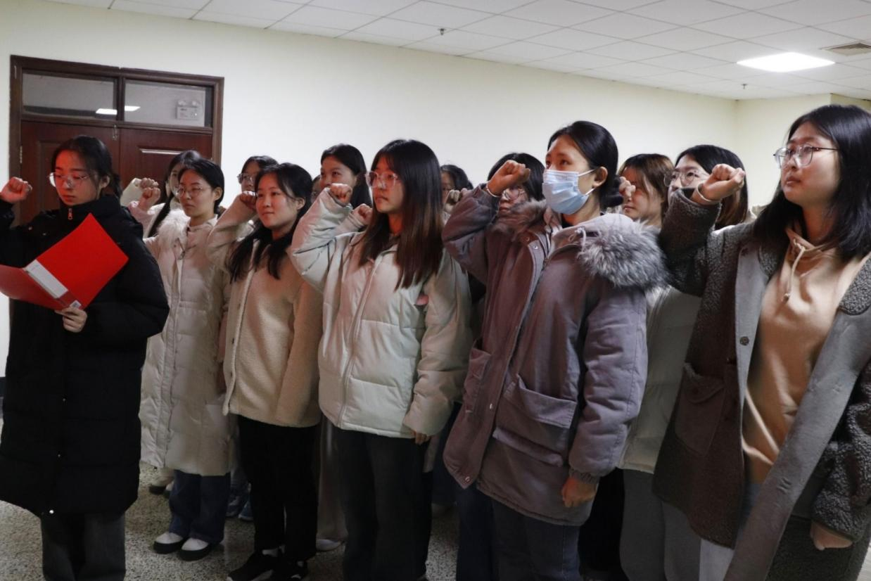 本次大会严格按照党组织接收预备党员的程序展开。会议伊始,杏吧原创 本科生第二党支部10名党员发展对象依次阐述对党的认识、入党动机、个人履历、家庭、主要社会关系情况以及应向党组织说明的其它问题,表达了自己加入中国共产党的决心和意志;随后,入党介绍人向大会介绍了发展对象的有关情况,并对其能否入党提出了意见,会议采取无记名投票的方式进行表决,按照组织程序对10名同志的入党问题进行了充分讨论;随后,董晓宇宣布表决结果,杏吧原创 本科生第二党支部一致认为10名发展对象符合加入中国共产党条件,同意接收其为中共预备党员;大会最后,10位预备党员举起右拳,面对党旗进行庄严宣誓。