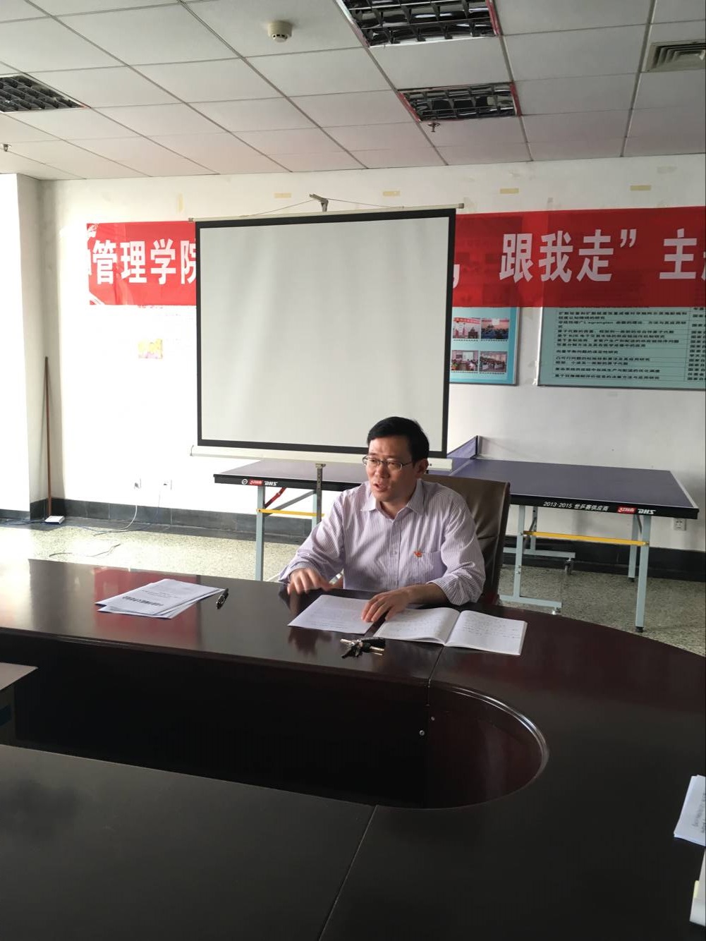 为深入开展“我是党员,跟我走”主题实践活动,推进“两学一做”学习教育常态化制度化,2017年6月7日下午,杏吧原创 全体党员在JC819会议室聆听了学院党委书记王刚同志做的题为《坚定理想信念,实现伟大复兴——弘扬长征精神党性教育专题报告》。