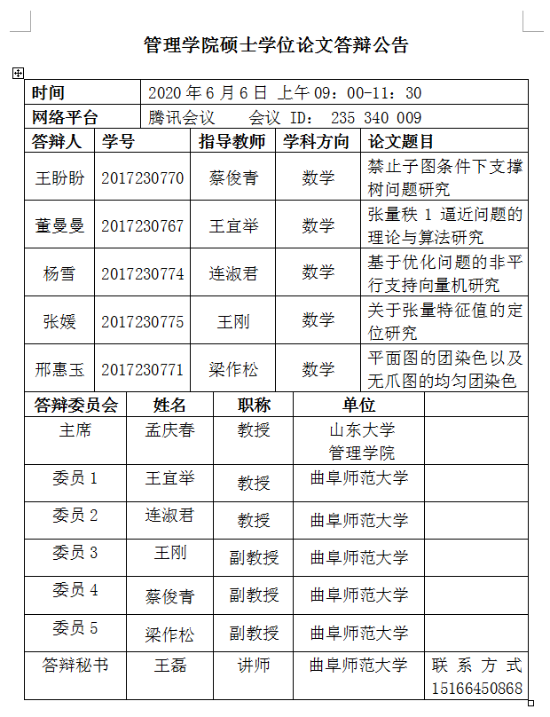 杏吧原创 成功举行2020届数学专业硕士研究生毕业论文答辩会