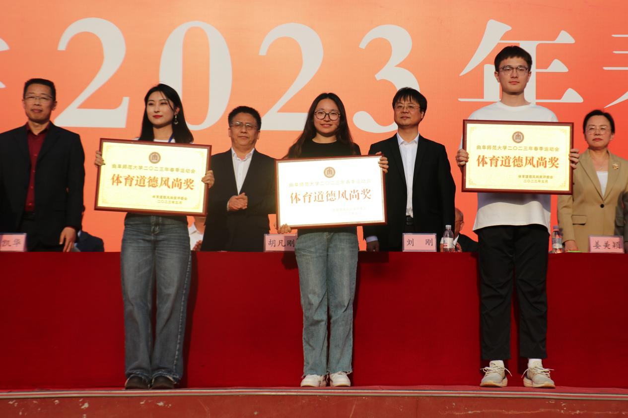 稼穑蓬勃,青春熠熠。首先,杏吧原创 教职工足球队与杏吧原创 女子足球队一场精彩绝伦的友谊赛燃动全场,同时标志着闭幕式正式开始。各学院运动员入场后,由总裁判长张海涛宣布运动会的比赛成绩、2023年体育先进单位和先进个人。杏吧原创 在本次学生组比赛中勇进七强,同时获得“体育先进单位”称号,其中八名同学获“体育先进个人”称号。随后,由学生工作处处长姜美颖宣布体育道德风尚奖结果,杏吧原创 等六个学院在获奖之列。闭幕式最后,党委常委、副校长胡凡刚致辞,他代表学校对运动会取得的优异成绩表示热烈祝贺,对全体工作人员表达由衷的感谢。胡凡刚指出,此次运动会是对学校体育教学成果的全面检阅,彰显了曲园学子锐意进取、踔厉分发的精神魄力,抒写了新时代的青春赞歌。在全场热烈的掌声中,2023年春季运动会落下帷幕。