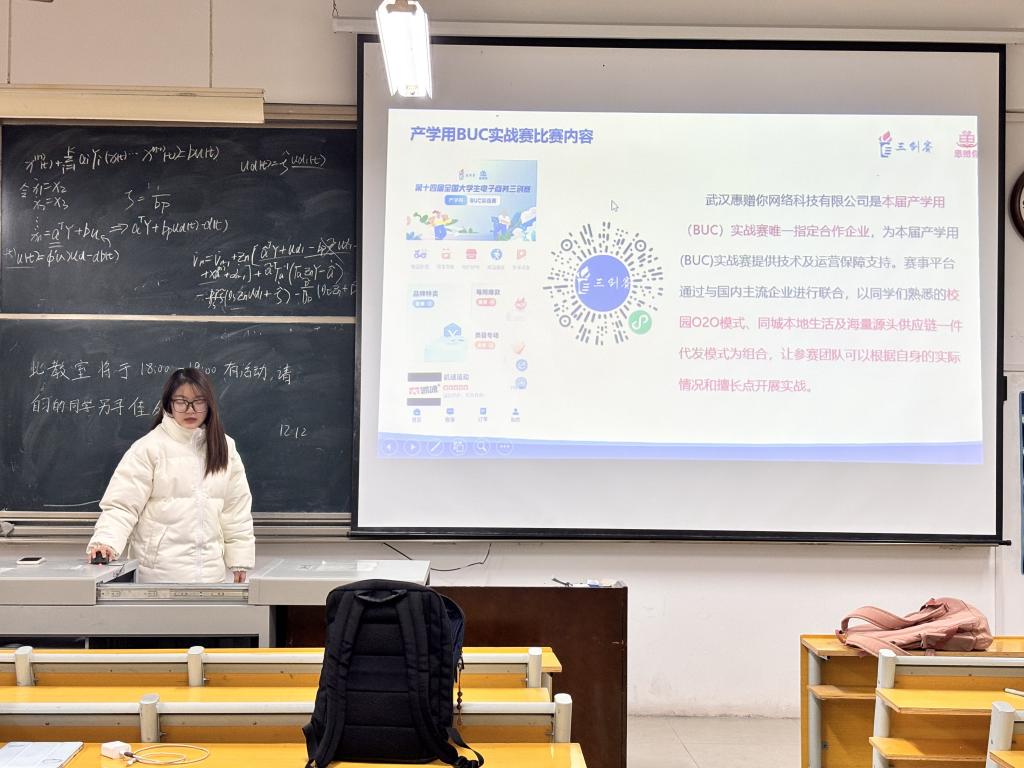 图为创新创业社副社介绍三创赛实战赛