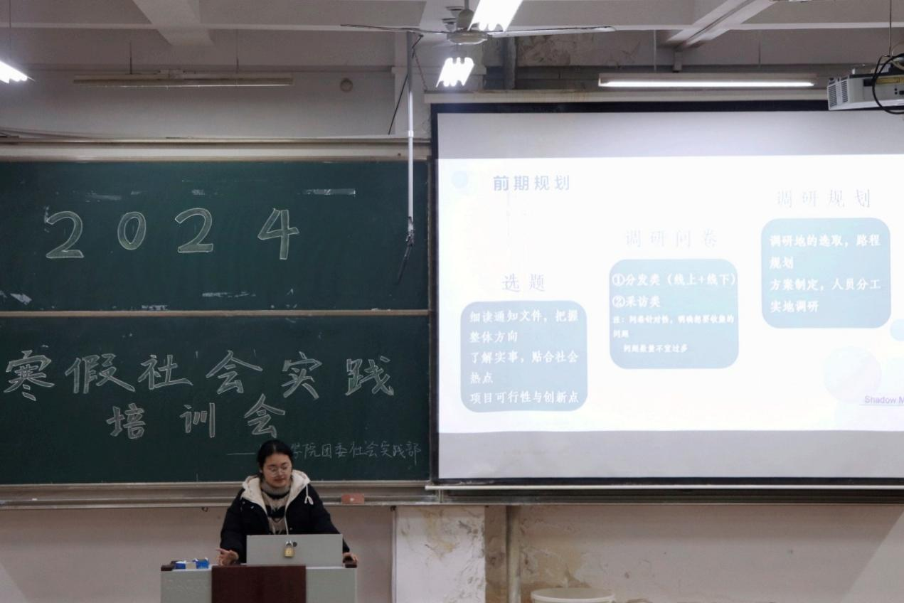 (通讯员:李苏航 孙明杉 摄影:侯雅洁 孙语晗)为了落实学院“一体两翼”育人模式、推动“三下乡”实践活动开展、提高管理学子的实践能力和综合素质,杏吧原创 社会实践部于12月24日在JA303教室成功举办寒假社会实践培训会,社会实践部部长王秀妍出席此次活动。