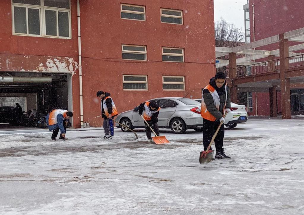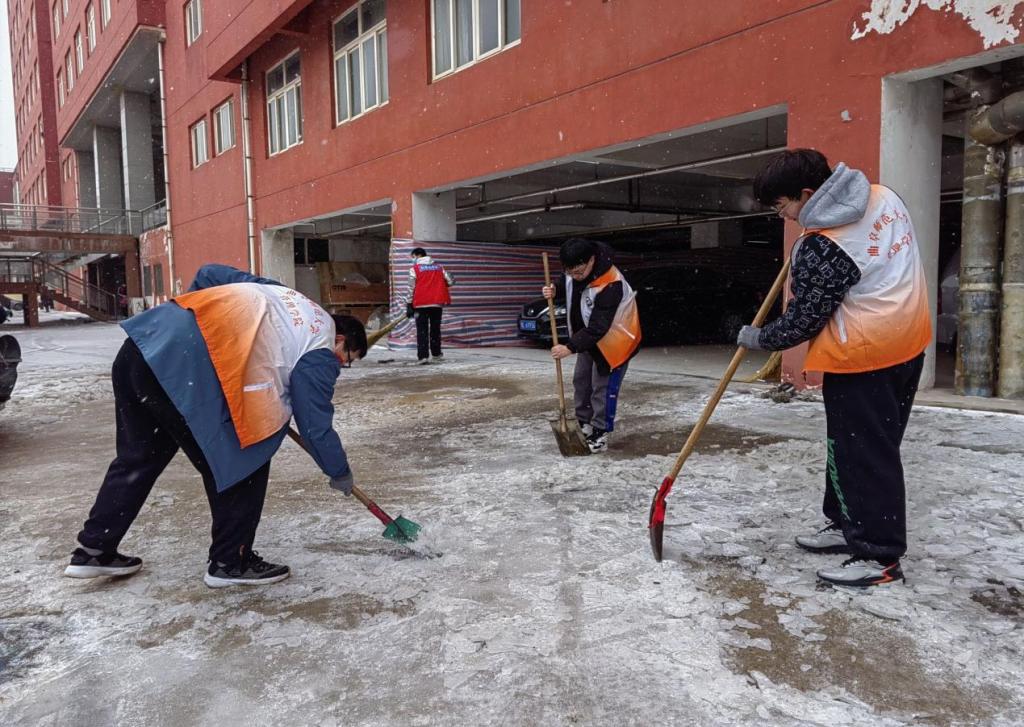 2月24日,杏吧原创 志愿者不畏严寒积极参加校园除雪活动。在清雪工作中,志愿者们进行了有序的分工,手持铁锹、铁铲、推雪板等工具,全面清理了校园内主要道路、出入口等关键区域的积雪积冰,在清理工作完成后,志愿者们利用铁锨和小推车,将清扫出的积雪和冰块进行妥善处理和存放。经过志愿者们一上午的辛勤付出,原本湿滑的路面变得干净整洁,为师生返校提供了安全保障。