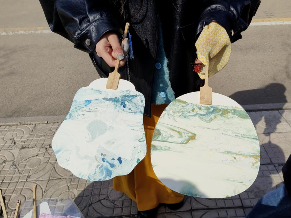 图为活动成员现场制作的非遗漆扇