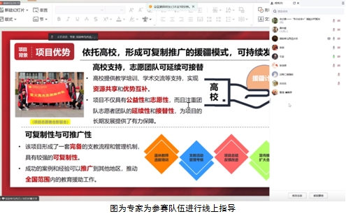 会上,张春欣围绕本次大赛的具体规则,与参赛项目师生进行了充分交流,对参赛队伍的项目策划与商业模式创新、市场分析与社会效益、可行度等多个方面进行了细致的指导与评估;他结合生动具体的案例,对各参赛队伍的问题和疑惑进行解答,引导参赛队伍更加直观地理解创新创业的精髓与要点;他积极倡导参赛队伍在项目实施过程中,要以创新思维为驱动力,聚焦项目选题,重视项目的落地性与可行性,凸显项目的实际应用价值。