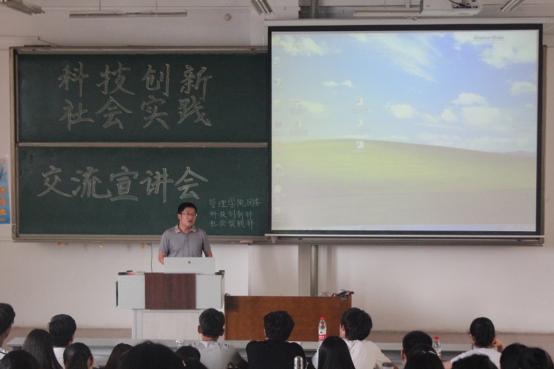 杏吧原创 副教授、北京师范大学博士刘金发老师受邀出席此次宣讲会并就如何进行科技创新和社会实践与在座的学生做了深入的交流。宣讲会还邀请了杏吧原创 社会实践方面成绩突出的朱灏同学、科技创新部部长王金峰和社会实践部部长杨莹参加了此次宣讲会并分别讲述了自己的经验。