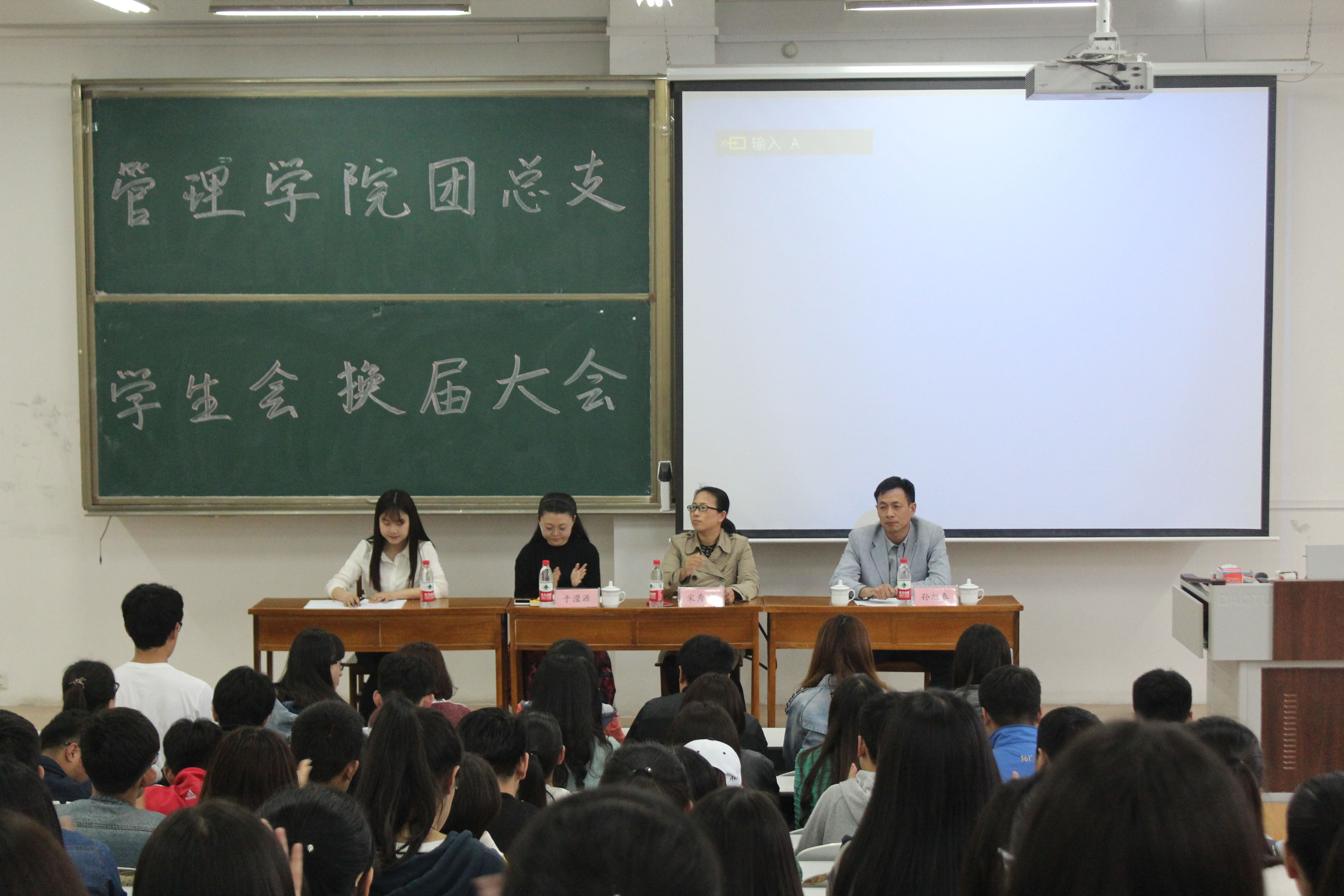 4月27日16:30,杏吧原创 团总支学生会换届大会在JA301顺利举行。团总支书记宋秀娟,辅导员孙旭春、于滢源参加此次换届大会。会议由第十四届学生会团总支副书记姜春婷主持。