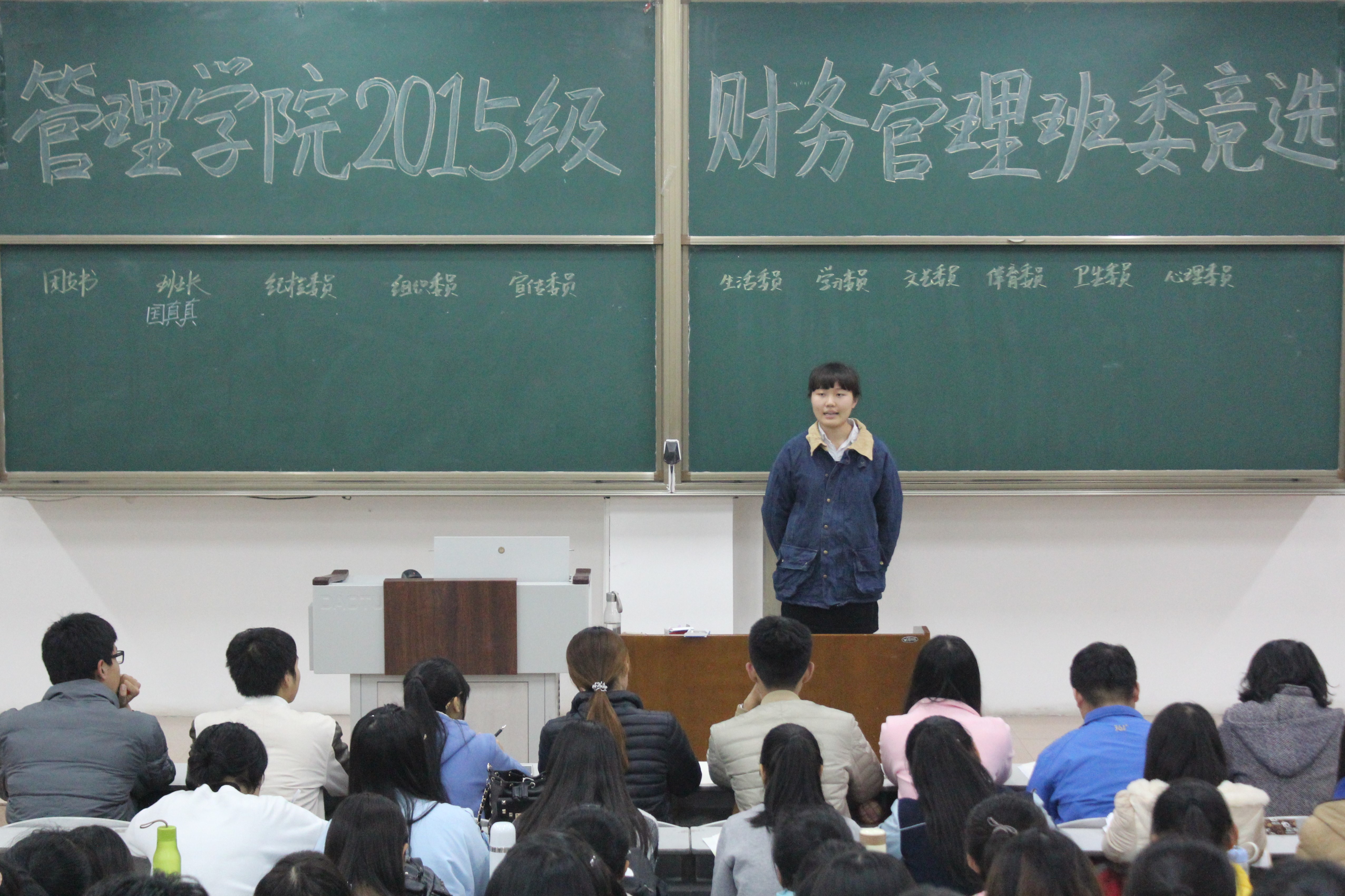 11月11日19:00,杏吧原创 2015级财务管理专业班委竞选于JA303顺利进行。杏吧原创 团总支书记、2015级辅导员宋秀娟参加此次班委竞选并担任主持,学生会副主席袁晟睿及2014级各班级主要学生干部参加了此次竞选。