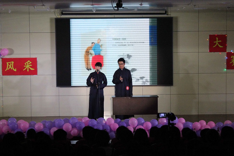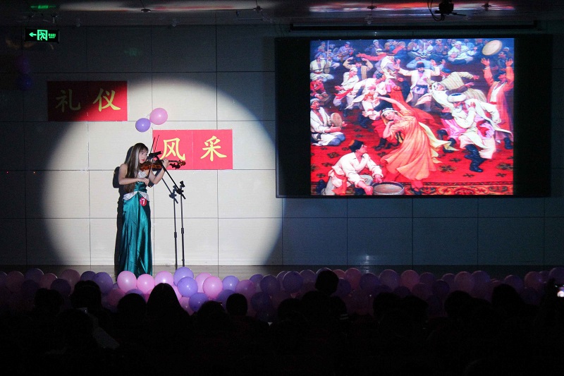 学子多样的风格。在现场观众高涨热烈的气氛中,答题环节里,参赛选手准确回答了中餐宴会、商务交往等交际场合中应注意的问题,充分展现了个人礼仪的风采。“才艺展示”环节推动现场到达一个新的高潮,选手们愈“战”愈勇,纷纷拿出看家本领。从嗨动全场的歌曲《红日》、充满韵味的舞蹈《夜上海》、感情饱满的诗朗诵《雨巷》,到精彩的国粹表演《京剧串烧》、令观众捧腹大笑的相声《学富五车》、近乎完美的小提琴演奏《新疆之春》,动听感人的歌曲《你是我的眼》,深深触动着在场每一位观众的心。活动中最震撼人心的莫过于由排练花絮制作成的视频,“台上一分钟,台下十年功”,每一位选手辛勤付出的努力,排练的过程中有欢笑也有汗水,但更多的是选手们在逐步成长的过程中收获了一份份真挚的友情。