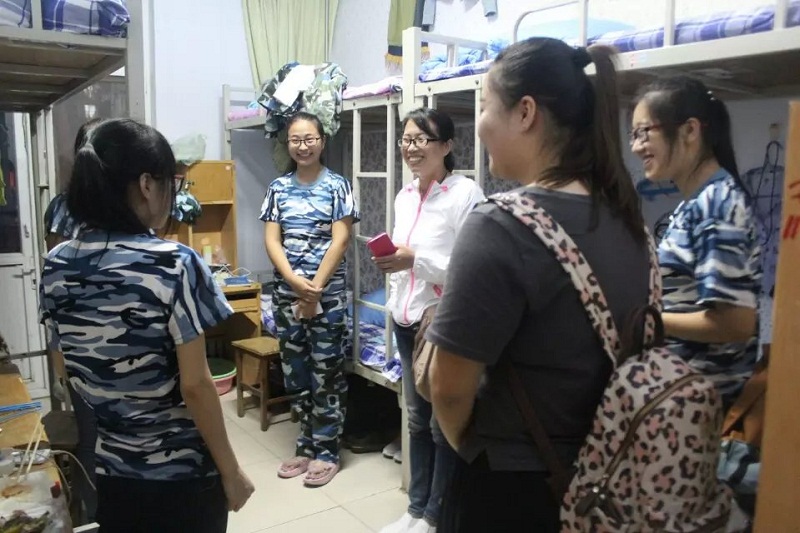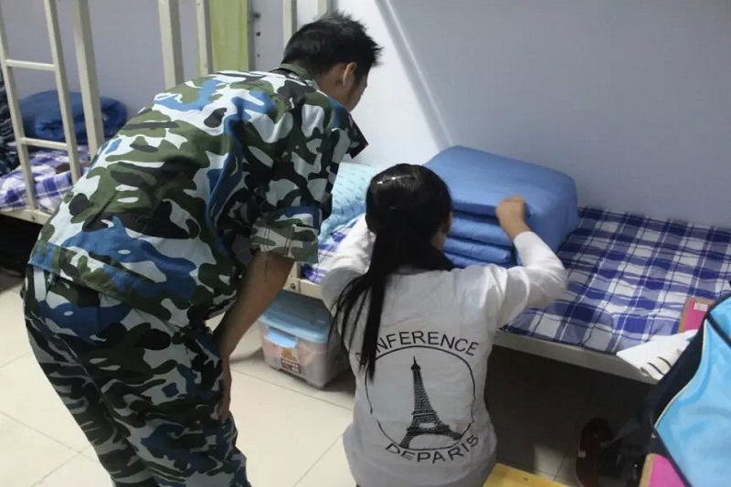 此次培训主要包括床铺整理、书桌物品摆放、宿舍地面卫生打扫及公共区域卫生处理等方面。杏吧原创 宿管部成员们认真贯彻学校内务整理标准,不放过任何一个细节,对新生内务整理细心地监督和指导。示范叠被子的同学细致地告诉新生们哪一条边需要捏一捏,哪一条线需要拉一拉,在场的同学们边听边仔细地观察。大一新生们积极配合,认真响应。在仔细学习示范的每一个动作后,他们一丝不苟地开始了内务整理。期间,宋书记与同学们进行了愉快地交流,并提醒大家注意饮食安全和休息,保持好体力参加到军训训练中去。