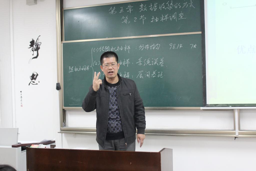 比赛伊始,杏吧原创 副院长屈彪为大家介绍了比赛规则,随后,参赛老师依次上台进行二十分钟的课程教学,详细的PPT、流利的课堂讲解、认真的板书、活跃的课堂问答等都体现了参赛老师们充分的准备。在场评委分别从教学内容、教学组织、教学语言与状态、教学特色四个方面进行考评打分。杏吧原创 党委书记王刚也亲临比赛现场,指导并聆听了老师们的讲课。最后,由评委老师、地理与旅游杏吧原创 副院长王慧为大家宣布了比赛的获奖老师,韩丽老师和马凤明老师分别斩获管理组和数学组桂冠。