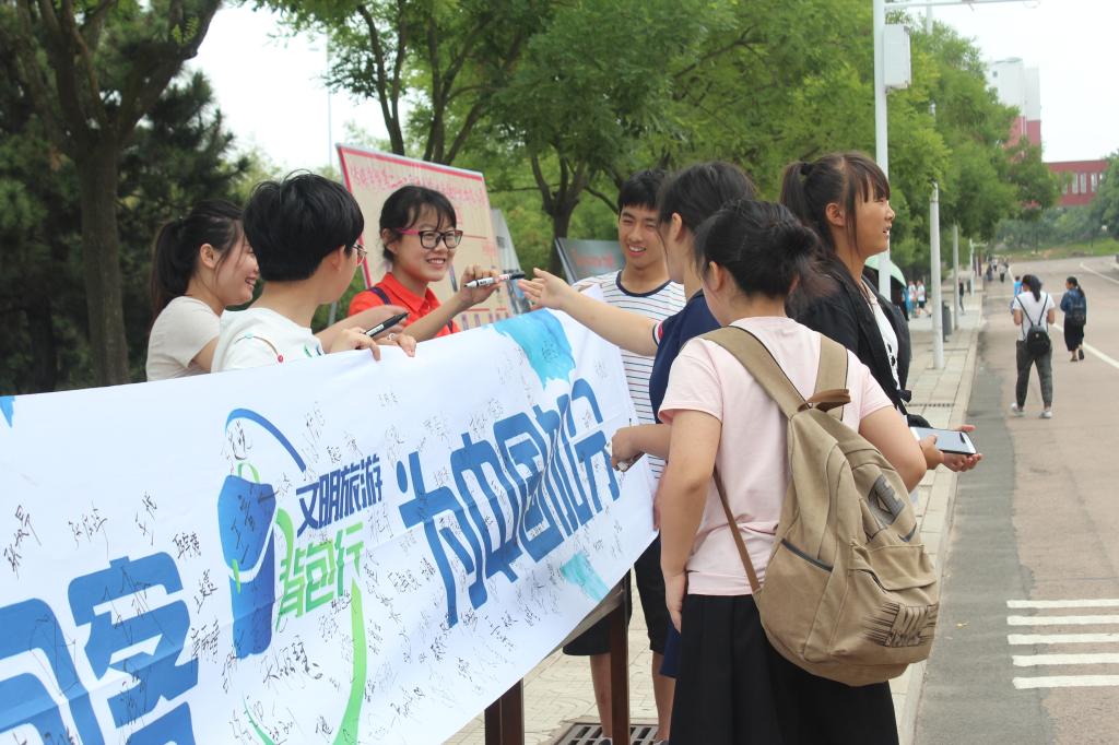 本次签名活动,以“文明背包客,为中国加分”为主题,宣扬了在旅游过程中的正能量,加大了对文明旅游的正面宣传,从而加深了文明旅游在同学们心中的印象,使大家充分发挥大学生的优势和力量,用自己的实际行动影响周边的人。