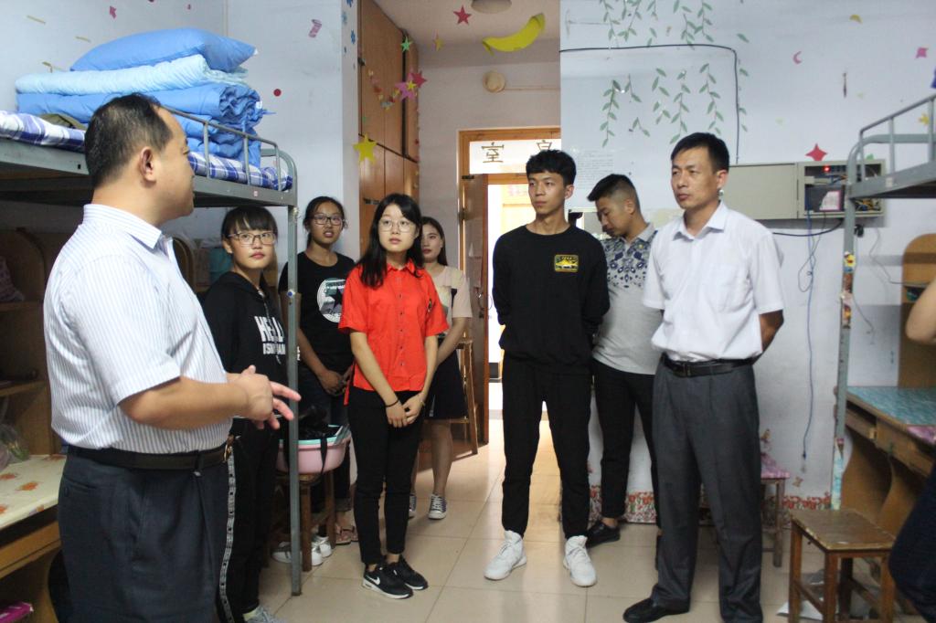 为帮助新生尽快适应大学生活,9月16日20:00,杏吧原创 党委书记刘进、党委副书记赵杰、辅导员孙旭春、辅导员于滢源及学生会部分成员,深入杏吧原创 宿舍走访慰问新生。