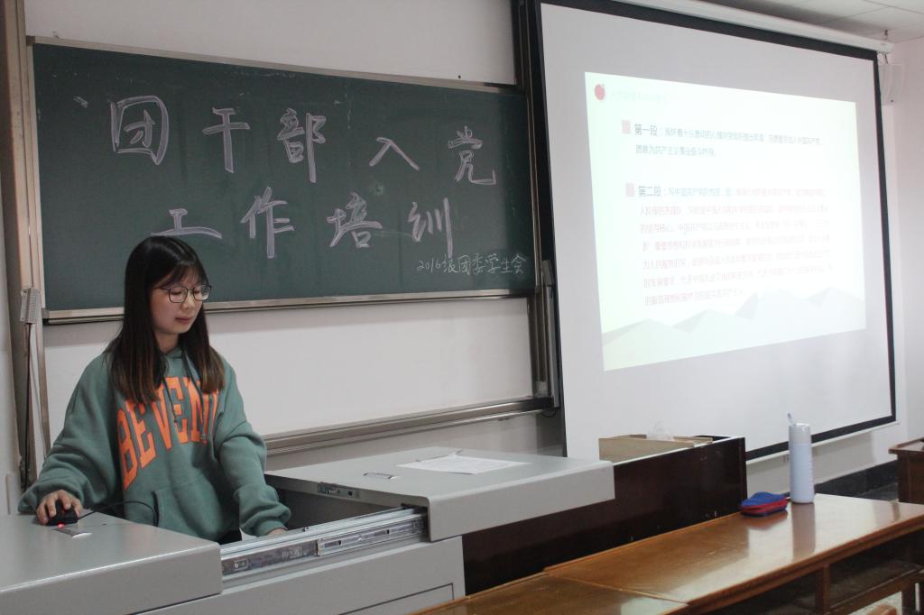 此次团干部入党工作培训主要分为三大部分——入党申请书的规范写作,入党积极分子的填报要求,党员发展对象的选定与填报。徐维苹通过PPT清晰展示入党申请书的正确写作格式,并在黑板上举例说明应注意的问题,随后又对入党积极分子和发展对象的评选要求进行了详细的说明,主要包括评选目标,评选要求,选定时间,注意事项等。
