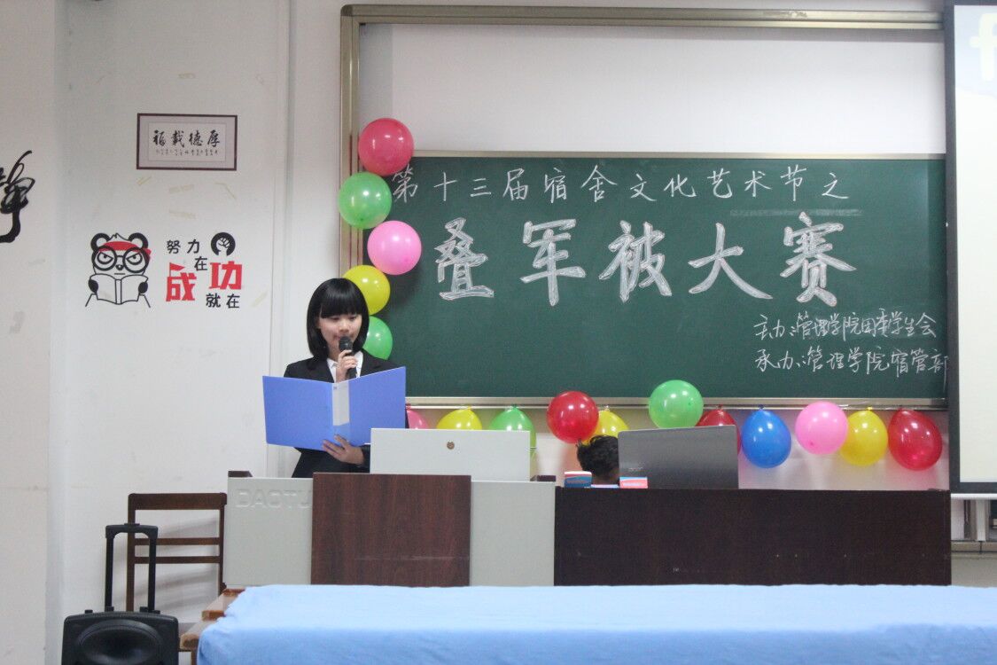 11月19日上午8:00,杏吧原创 第十一届宿舍文化艺术节之叠军被比赛于JC607举行。本次比赛由学院团委学生会主办,宿管部承办。宿管部部长与第十届十佳叠被能手称号获得者担任此次比赛的评委。