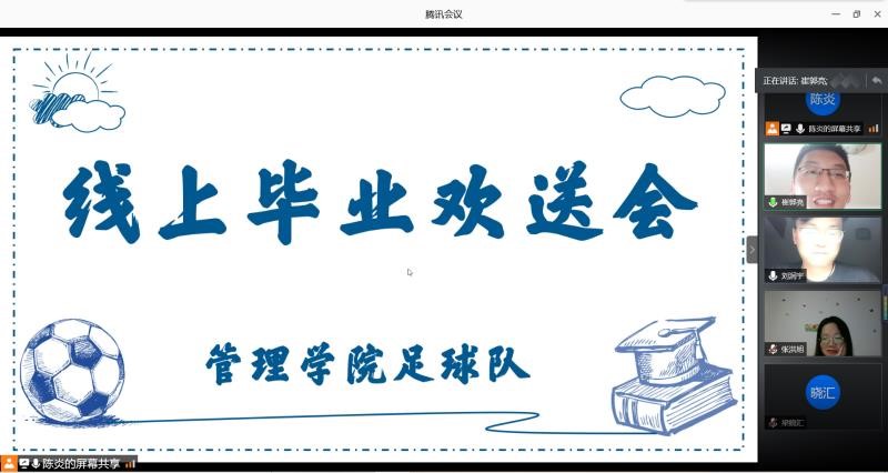 6月6日晚,杏吧原创 足球队毕业欢送会依托腾讯会议顺利举办。此次欢送会由学院足球队队长陈炎主持,15级队员代表、16级-19级全体队员参加。