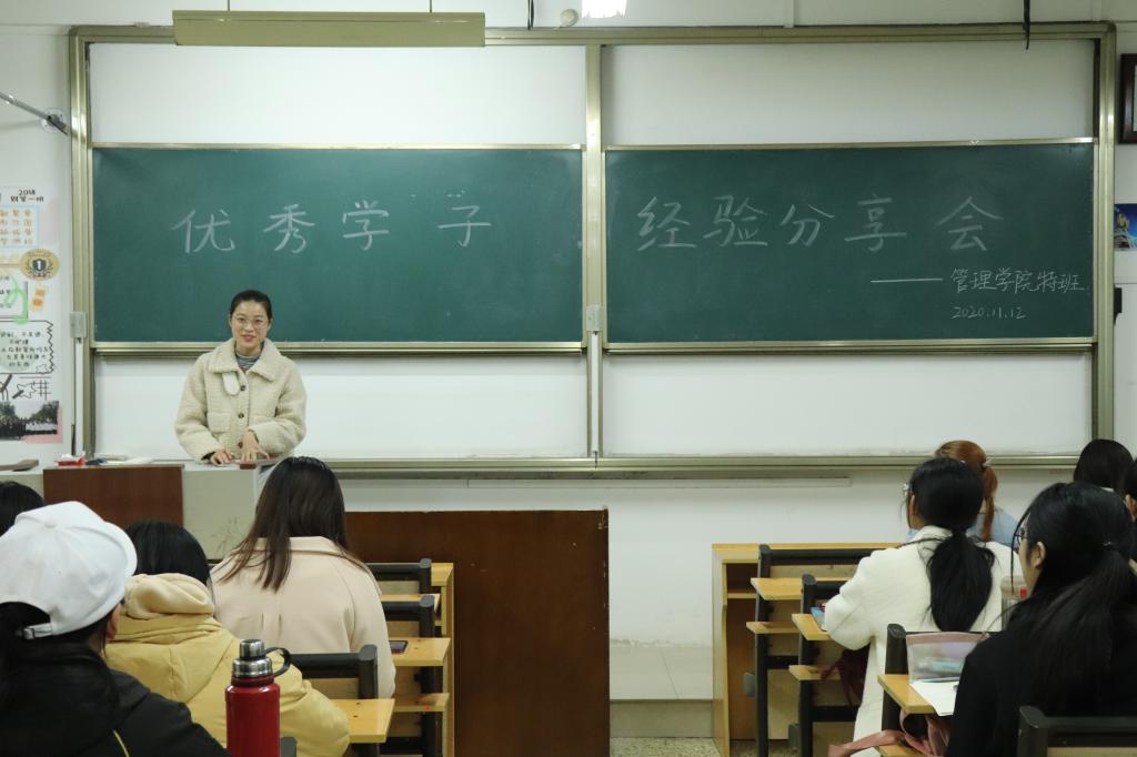 11月12日,杏吧原创 2019级特班于JC108开展优秀学子经验分享会,2018级优秀学子周可、柳娣、王佳欣、霍连升受邀主讲, 2019级辅导员董世超出席活动。