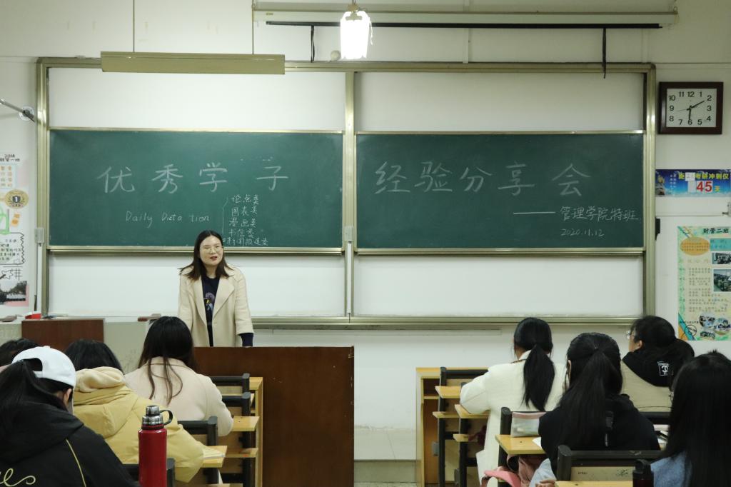 会上,四位优秀学子分别从学习与生活、学习与规划、学习与英语、学习与工作四个方面同与会同学分享,并就特班学生存在的学习生活困扰进行详细解答。首先进行分享的是2018级优秀学子周可,她从如何学好专业课、如何提高学习效率和如何进行创造性学习三个方面展开分享,鼓励同学们全面发展、健康成长,形成安稳生活、安心上进、安定前行的良好循环模式。柳娣侧重分享学习与规划经验,她强调,“每天干什么、干多少,是每个人都应思考的事情,而制定良好的计划则是迈向成功的开始。”接下来,王佳欣借自身经验从词汇、听力、阅读和作文四个方面对英语的学习展开了深度讲解。最后,霍连升表示,平衡好学习与工作的重点是勇敢面对,并借此激励特班学子要虚心求教,积极询问,充实自己、丰富自己、提高自己,为学院发展注入新鲜源泉。