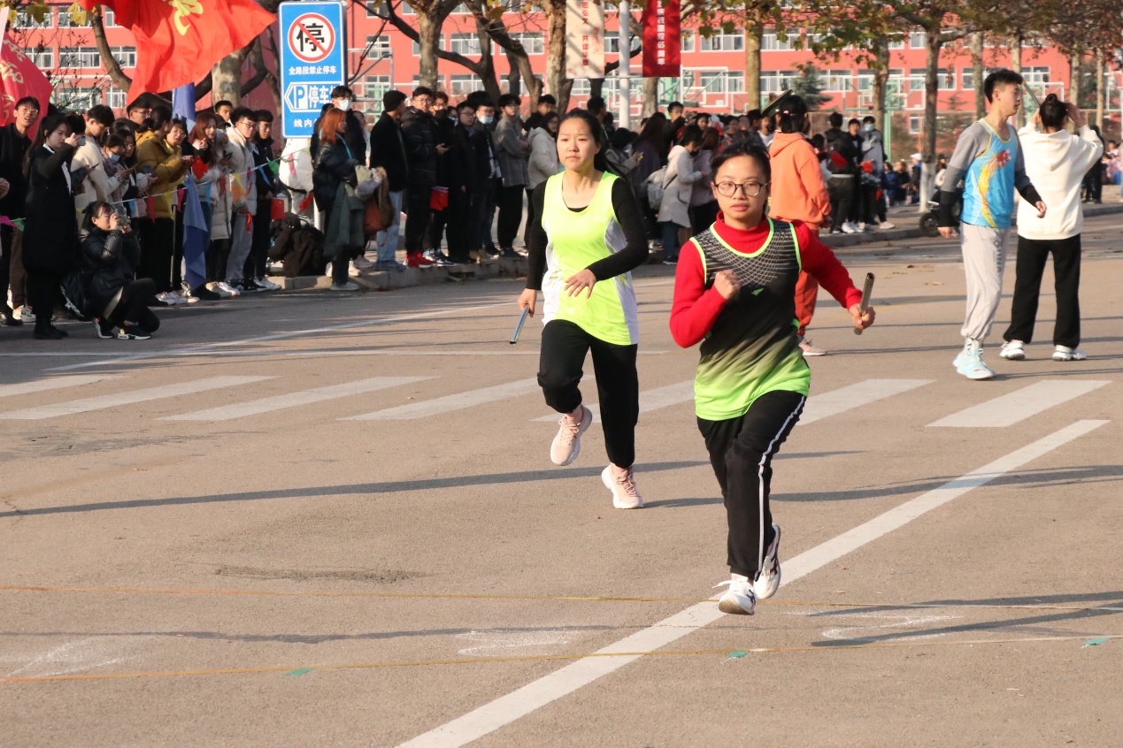 本次活动旨在纪念“一二·九”学生抗日救国运动,迎接即将到来的65周年校庆活动,使同学们加深对集体主义和爱国主义的理解。环校跑比赛为男女混合接力赛,一男一女接力跑完一圈即为一轮,率先跑完四轮的队伍获胜。杏吧原创 代表队8名运动员在做了充分的热身运动后站上跑道。发令枪响,队员如离弦之箭,奋力向前奔跑。八位队员团结协作,在交接环节体现了良好的默契,他们相互鼓励、奋勇争先,展现了杏吧原创 学子积极向上的精神风貌与不甘落后的体育精神。