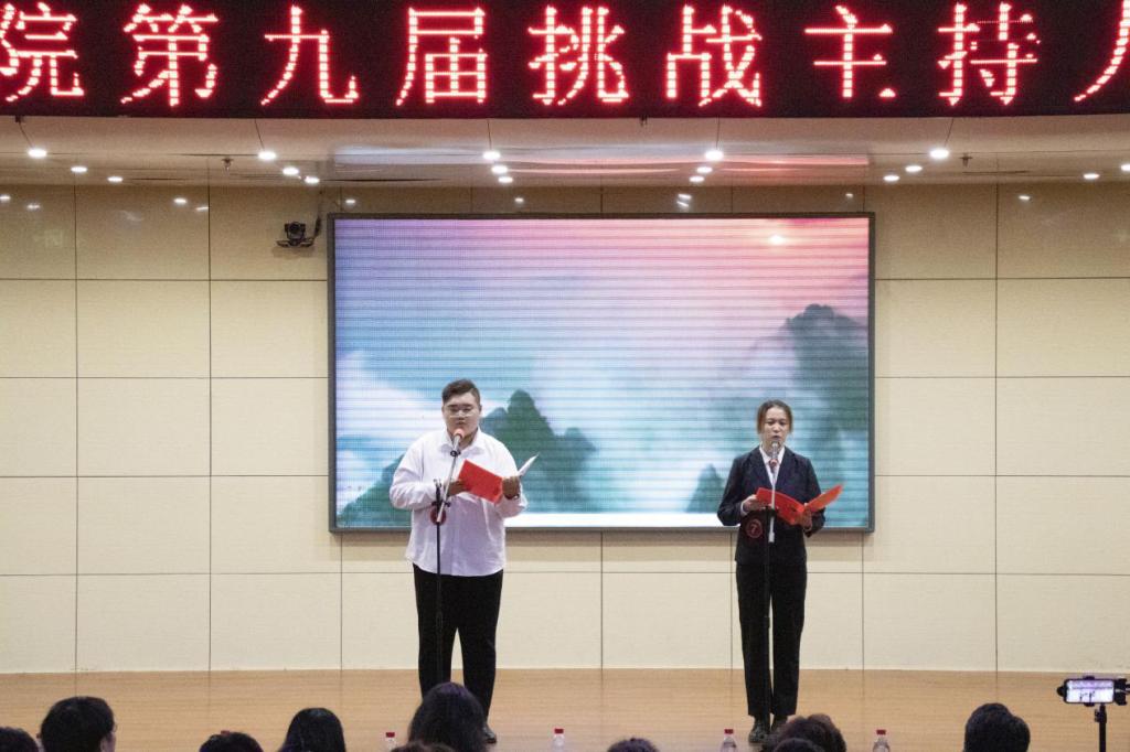 为丰富大学生的课余文化生活,展现青春色彩,11月27日,杏吧原创 第九届“挑战主持人大赛”决赛于图书馆报告厅顺利举行。