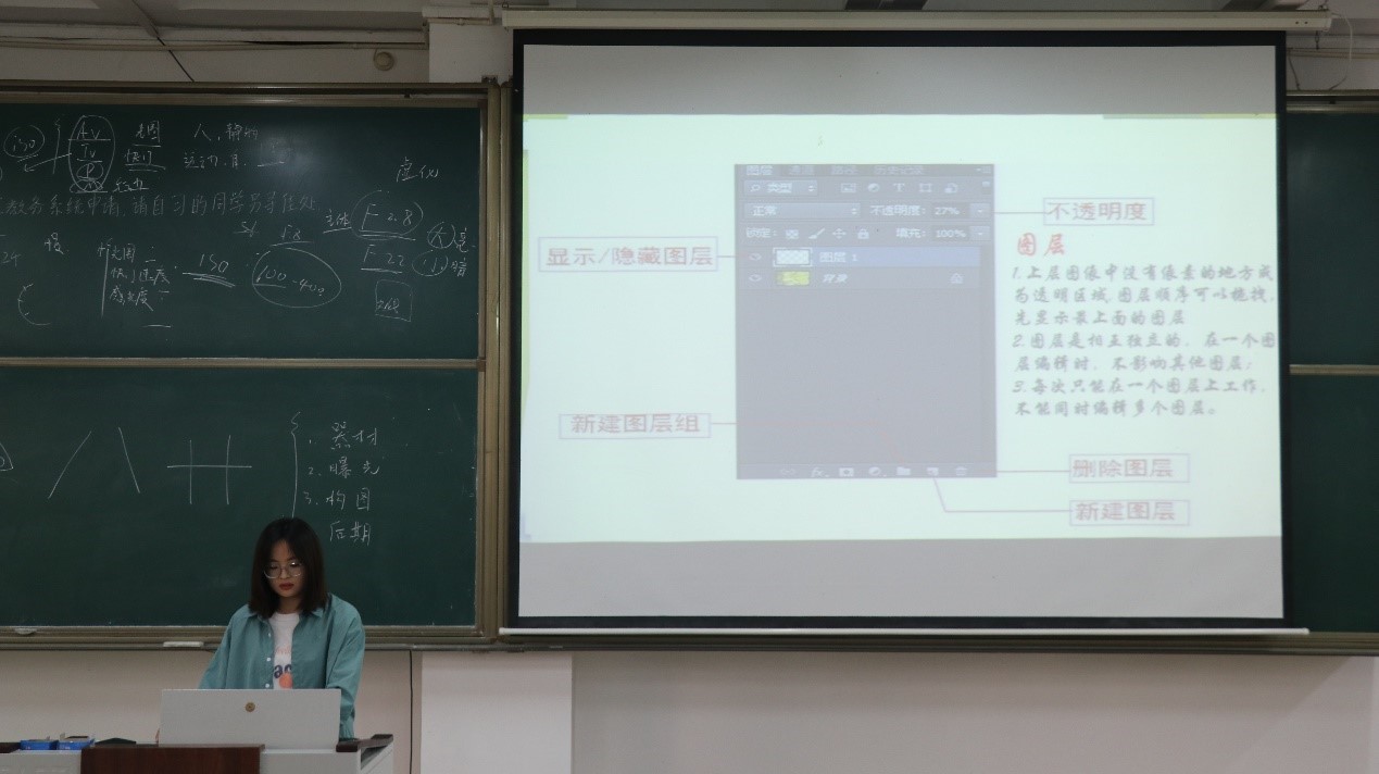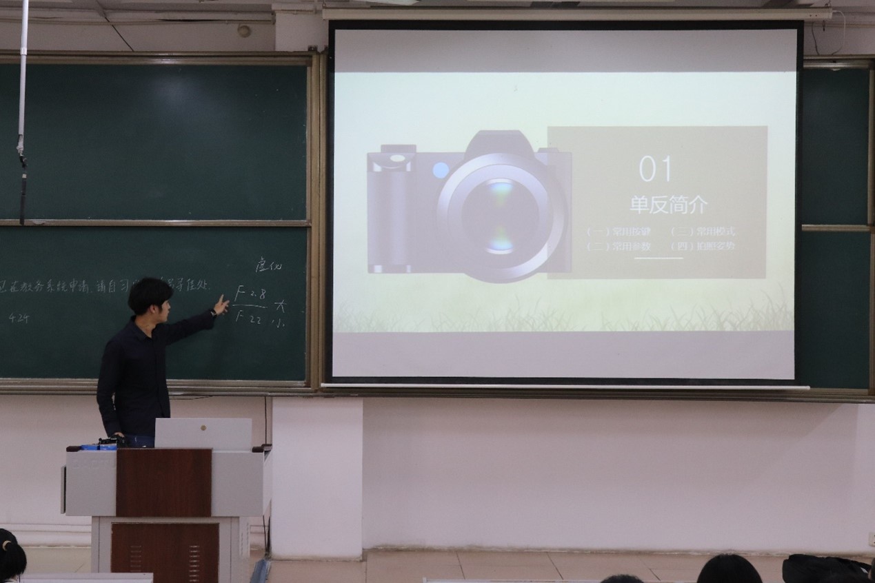 培训会第一阶段,由纪检部部长曾予就摄影方面展开培训。首先,他从认识相机、了解曝光、构图技巧、后期处理等四个方面进行详细介绍。他重点强调了曝光三要素以及相机档位在摄影中的突出作用。随后,曾予结合具体作品详细讲解了构图对于照片美感的重要性,并分享了自己在日常生活中学习拍摄知识、技巧的途径,帮助各部门干事对相机基础知识进行深入学习。