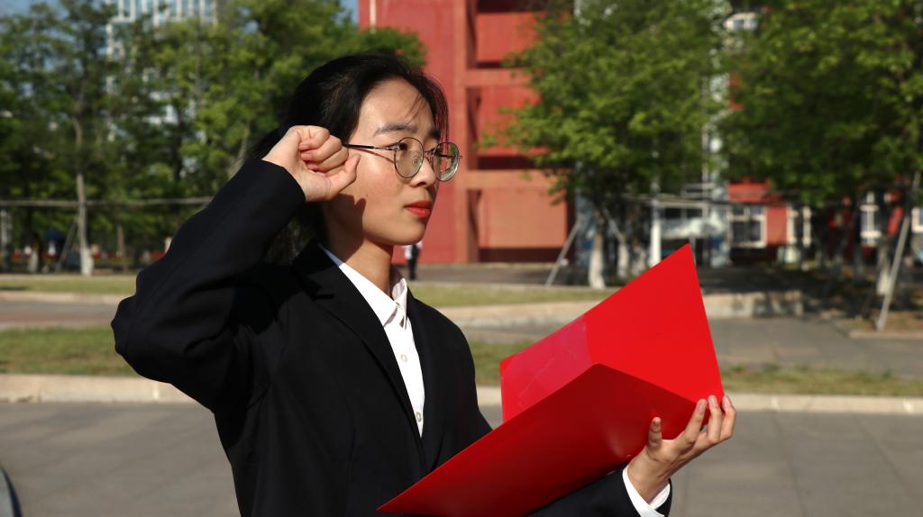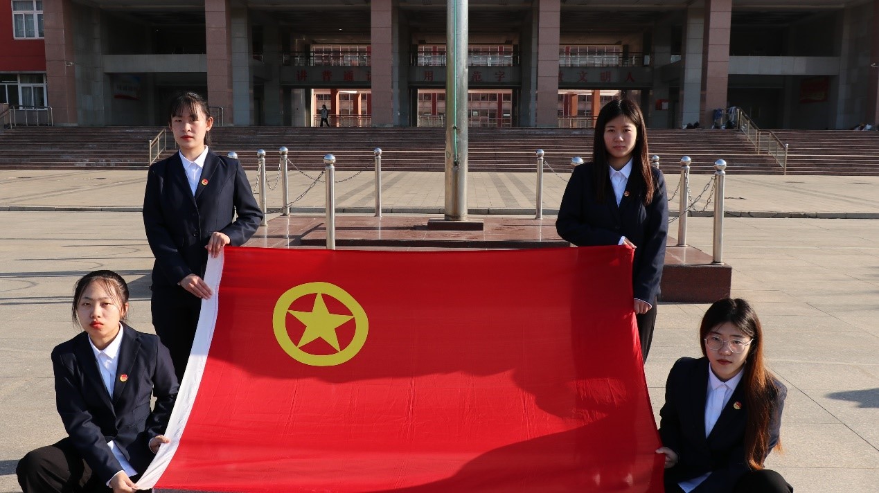 早上七点,全体团员代表身着正装,佩戴团徽,沐浴着晨光整齐划一地站在国旗下。在团委副书记邵玺睿领誓下,团员们全体立正,右手握拳,面对团旗庄严宣誓:“我志愿加入中国共产主义青年团!”朝阳下的团员们意气风发、慷慨激昂,右手握拳许下青春誓言,是对前行者的致敬,是红色基因的传承,也是我们对共青团最长情的告白。