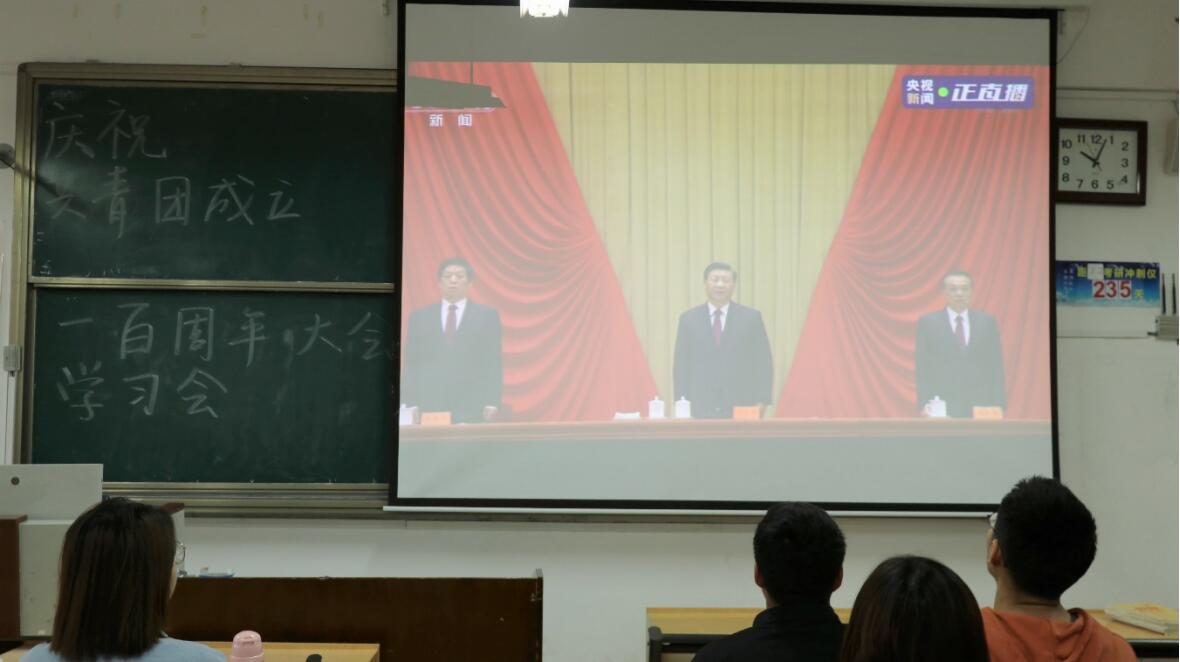 总书记的讲话掷地有声、振奋人心,各班同学都感触颇深,纷纷表示将在日后踔厉奋发、笃行不怠,以实际行动擦亮青春之底色,用青春的智慧和汗水打拼出一个更加美好的中国。
