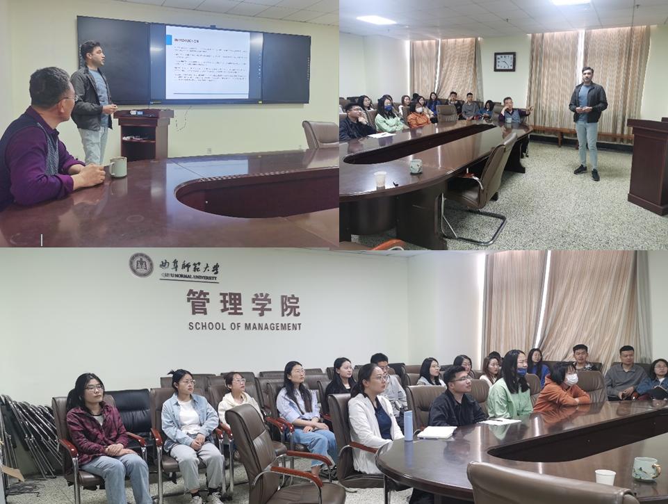 报告会上,Fahad博士先后做了题目为“Implementing a novel deep learning technique for rainfall forecasting via climatic variables: An approach via hierarchical clustering analysis”和“Assessment of environmental indicators and climatic risks by using an extended sustainable livelihood framework: causes and consequences of climate change”的学术报告。他以巴基斯坦的暴雨灾害为例建立了暴雨灾害的预测模型,并通过数值算例进行了验证。Fahad博士还就管理预测和风险管理的前沿和热点问题与研究生进行了广泛深入的交流。Fahad博士的突出成绩给同学们留下了深刻的印象。
