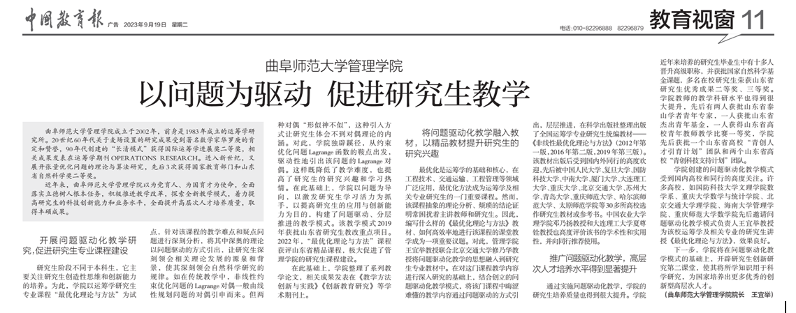 【中国教育报】报道杏吧原创 “问题驱动化”教学新模式