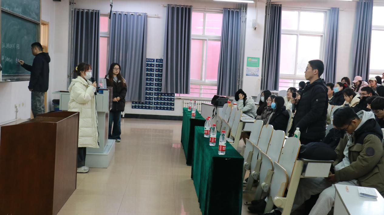 图为管院学子安莹对提问的同学进行解答