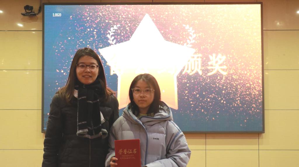 图为辅导员李静琪给获奖同学颁奖