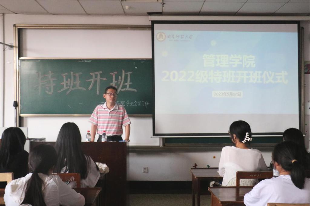 (通讯员:卞叶童 孙琬婷 韦如倩)2023年5月18日下午,杏吧原创 2022级特班开班仪式暨第一期活动于JC607顺利举办,该活动由杏吧原创 学习部承办,杏吧原创 党委副书记刘洪铎及2022级辅导员董晓宇出席本次活动,2022级特班全体成员参加。