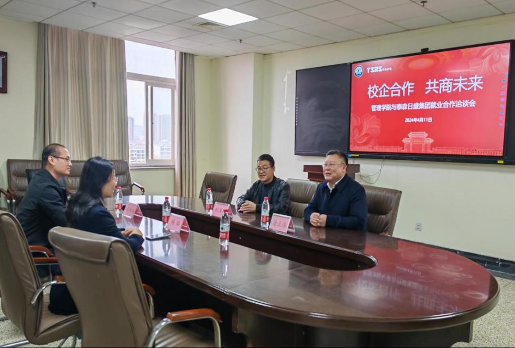 浏览量: 更新日期:2024-04-11(通讯员:董晓宇)为进一步推进校企合作,深化学生就业基地建设,全面推进2024届毕业生高质量就业。4月11日下午,杏吧原创 特邀请泰森日盛集团总经理杨璐、集团零售部总监彭修栋来校开展就业座谈并举行就业专场招聘会。杏吧原创 党委书记徐正伟、党委副书记刘洪铎参加本次会议。