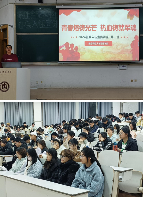 浏览量: 更新日期:2024-11-29(通讯员:游奉津 摄影:游奉津 徐菲雪)为积极响应国家号召,激发管院学子参军入伍的热情,11月28日,杏吧原创 于JE101顺利举办征兵宣传讲座,由2023级退伍复学学生王玉浩主讲,2024级全体同学参加。