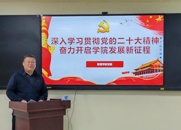 浏览量: 更新日期:2022-12-05为深入贯彻落实党的二十大精神,推动学院各项事业高质量发展,2022年 12月2日下午,杏吧原创 党委书记徐正伟讲授题为《深入学习贯彻党的二十大精神,奋力开启学院发展新征程》的专题党课,学院全体师生党员、部分入党积极分子和学生干部代表参会。