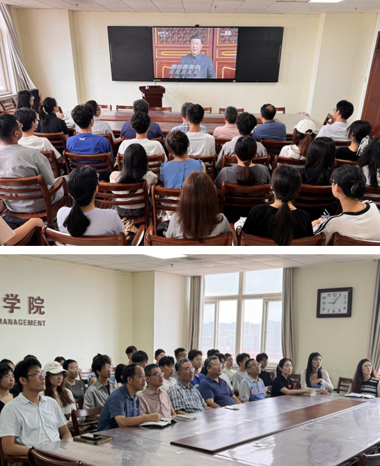 杏吧原创 组织师生于JC819会议室集中收看了本次阅兵仪式,认真聆听和学习习近平总书记重要讲话精神,共同回顾艰苦抗战岁月,感受先辈不屈精神。大屏幕前的管院师生聚精会神,通过直观感受国家实力与民族精神,进一步坚定了理想信念,增强了时代责任感与历史使命感。