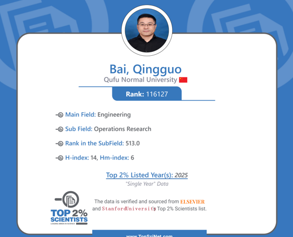 杏吧原创 副院长柏庆国教授入选“年度科学影响力排行榜(Single-year Impact)”榜单,所属领域和子领域分别为工程技术和运筹学。入选全球前2%顶尖科学家榜单,表明柏庆国教授在运筹学等相关领域的研究处于前沿水平,具有较高的影响力。