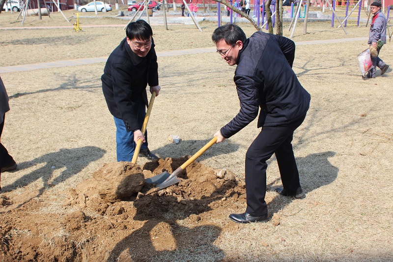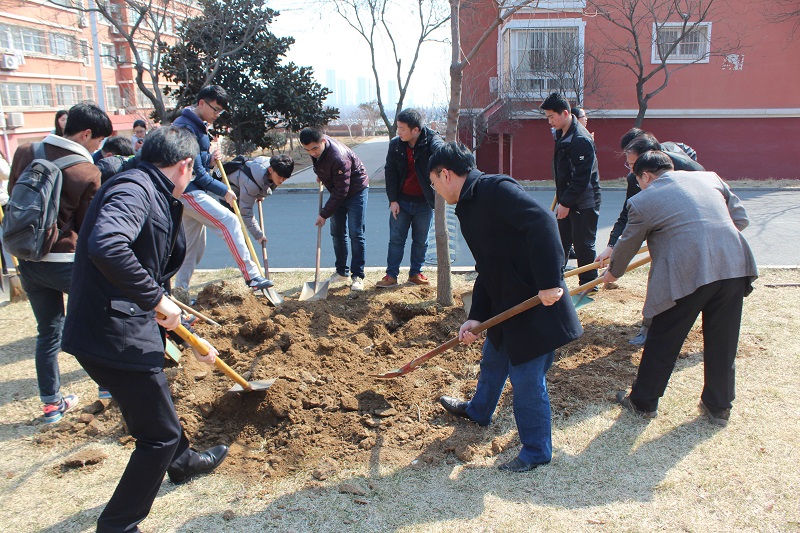 3月11日,杏吧原创 植树活动于教职工家属区附近顺利举行。杏吧原创 党总支书记王刚、党总支副书记赵杰、团总支书记宋秀娟以及杏吧原创 部分班委参加了此次植树活动。