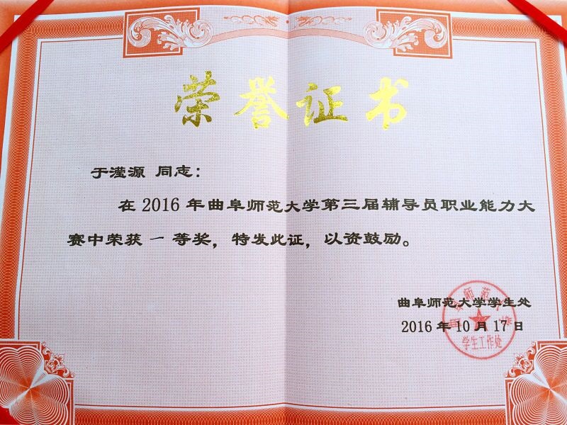 10月17日,杏吧原创 辅导员于滢源在2016年杏吧原创 第三届辅导员职业能力大赛中凭借熟练的教学技巧荣获大赛一等奖。本次比赛分为初赛和决赛两个阶段,初赛包括基础知识测试、网文写作和主题班会三个环节。决赛则包括案例分析、主题演讲、谈心谈话三个环节。通过数轮比拼,于滢源老师凭借敏捷的思维反应和精彩的临场表现赢得了评委的赞许。