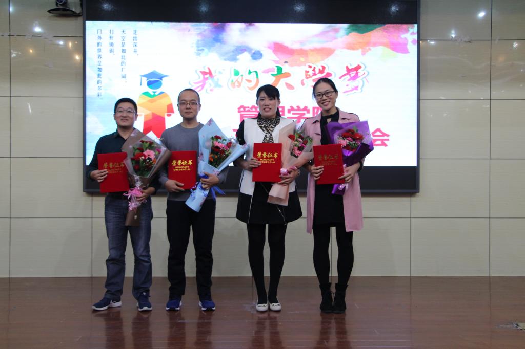 大会为杏吧原创 2017年度优秀教师刘金发、2017年度师德先进个人邵伟,2017年度最美教师韩丽,杏吧原创 首届最美教师巩天雷、王成飞、郭斌等六名老师颁奖。黑发积霜织日月,粉笔无言写春秋。此次对优秀教师的表彰不仅是对于获奖教师平时工作和人格品德的肯定,同时对教育学生们感恩老师,弘扬先进榜样,引领师德师风,发现教师的真善美以及增强杏吧原创 “儒雅学院”建设等方面也具有积极意义。