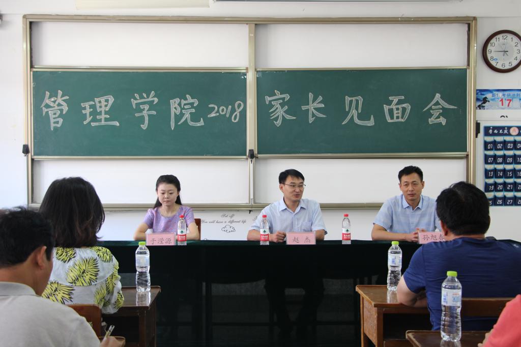 浏览量: 更新日期:2018-09-09为促进学校与家庭建立互助、互信的密切联系,贯彻落实“家校合作育人”的举措,9月9日,杏吧原创 举行2018级新生家长见面会。杏吧原创 党委副书记赵杰,团委书记孙旭春、辅导员于滢源出席此次见面会。