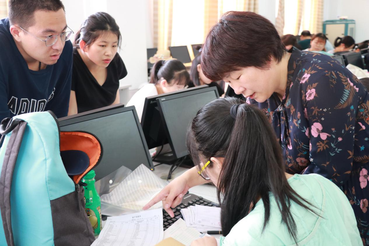 此次会计操作实训专业理论与操作实践相结合,具体内容分为开设账簿、编制自制原始凭证、财务报表编制、财务软件操作和纳税申报显示及互动交流等环节。实训前,卢芳老师对会计学内容进行讲解梳理;在手工记账操作过程中,学生积极动手试练,将理论知识付诸实际行为,并切身体会到自身在专业实践方面存在的不足,通过进一步向老师请教不解之惑,学生表示收获满满;后续开展的线上系统录账更是提高了学生应用财务信息系统的技能。实训尾声,卢芳对实训做出总结,她着重梳理了会计实务各环节易错易混点,提醒学生时刻注重养成细致严谨的工作学习习惯,并对学生寄予美好祝愿。