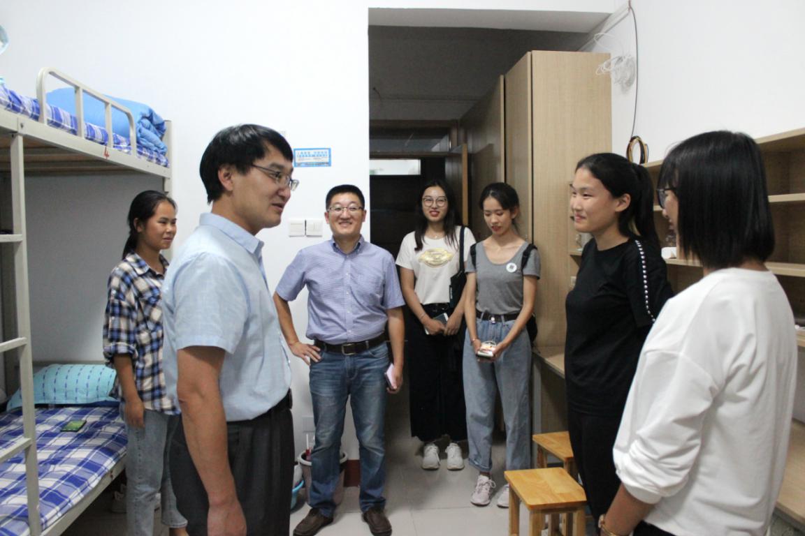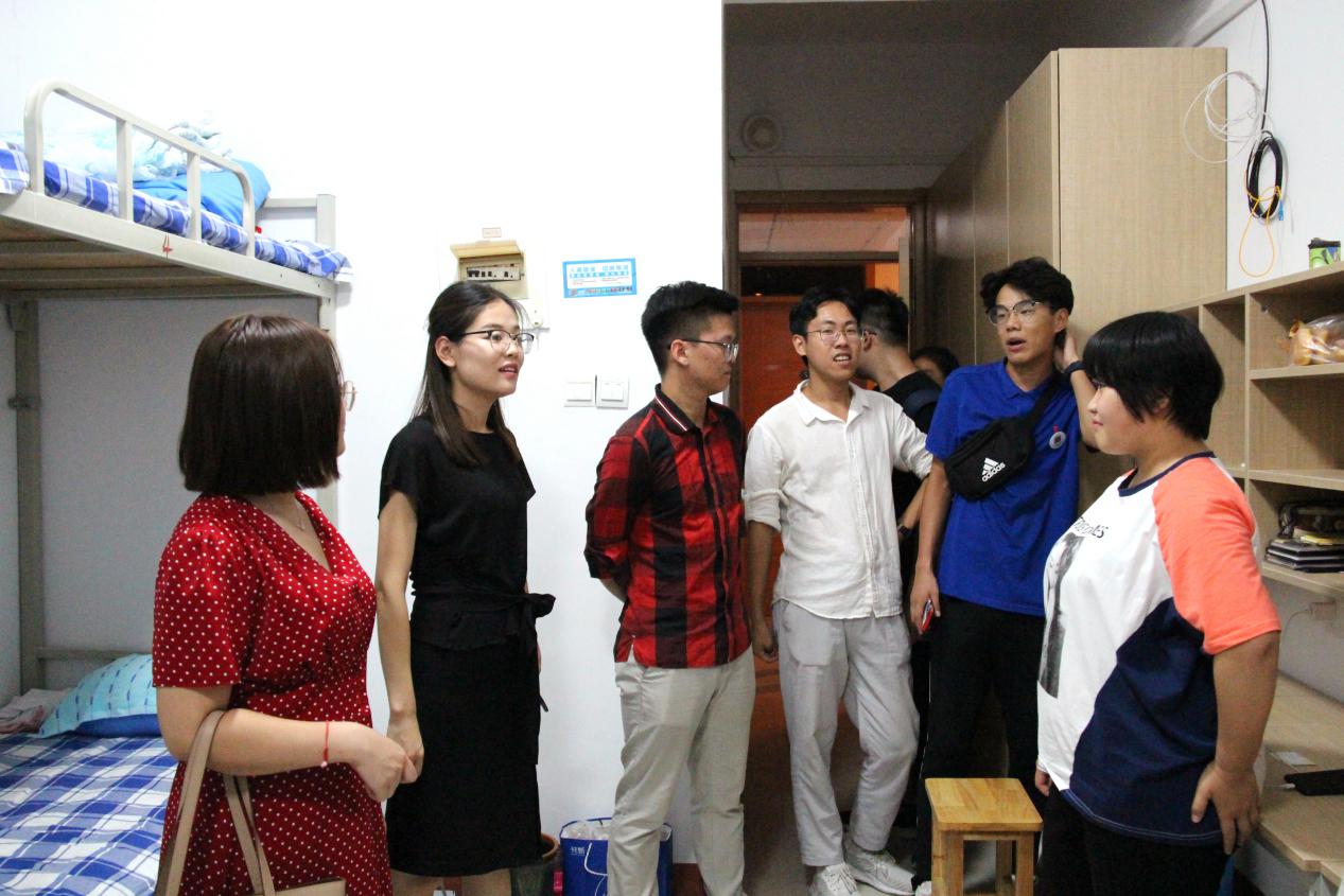浏览量: 更新日期:2019-09-089月7日晚,杏吧原创 党委副书记赵杰、副院长刘金发、16级辅导员李静琪、19级辅导员董世超以及团委学生会主席团深入走访19级新生宿舍园区,察看新生入住情况。