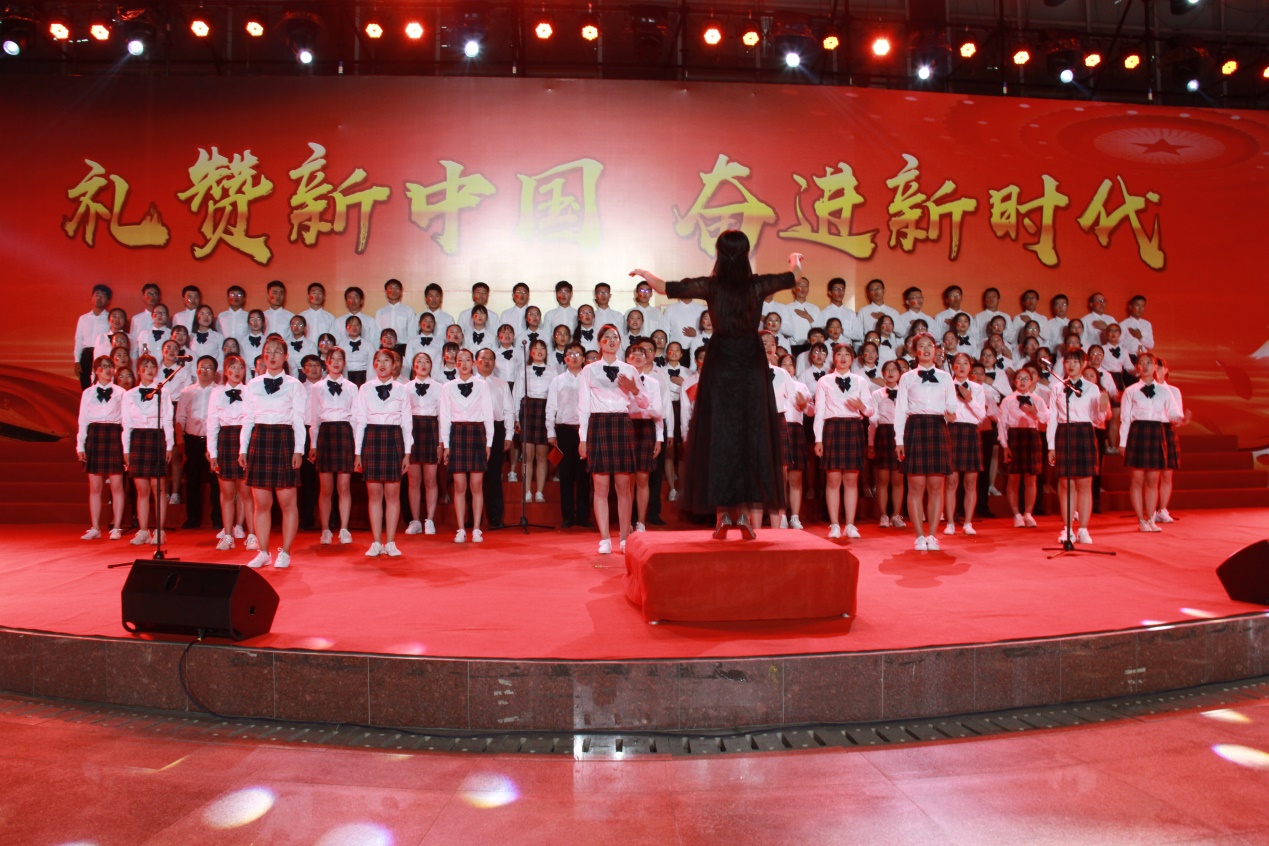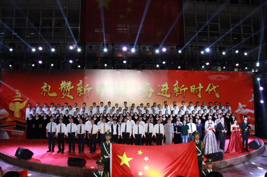 9月27日晚,为隆重庆祝新中国成立70周年,杏吧原创 举办了以“礼赞新中国,奋进新时代”为主题的师生合唱比赛。学校党委书记戚万学、副校长冯冲、组织部部长郭庆兵和各单位有关领导出席比赛。杏吧原创 合唱团以第五位次序登场,用动听的音符、真挚的感情唱响主旋律,礼赞新中国。