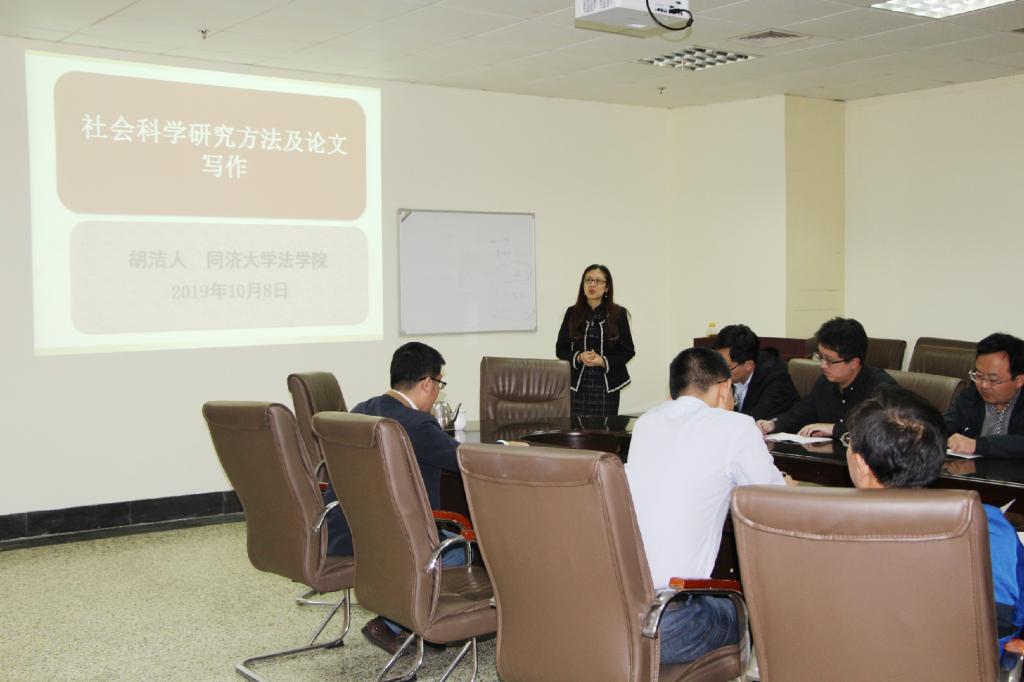 浏览量: 更新日期:2019-10-0910月8日下午,同济大学法学院副教授胡洁人应邀在杏吧原创 会议室JC819作了题为“社会科学研究方法及论文写作”的讲座。讲座由杏吧原创 副院长刘金发副教授主持,学院部分老师和研究生聆听了讲座。