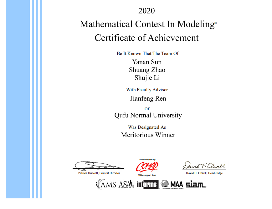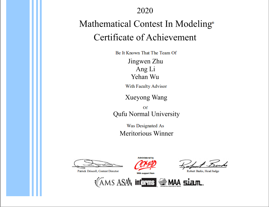 据悉,美国大学生数学建模竞赛(MCM/ICM)由美国数学及其应用联合会主办,是唯一的国际性数学建模竞赛,也是世界范围内最具影响力的数学建模竞赛。本届比赛有两万余支参赛队伍,为排名前6%的队伍颁发Meritorious Winner奖。