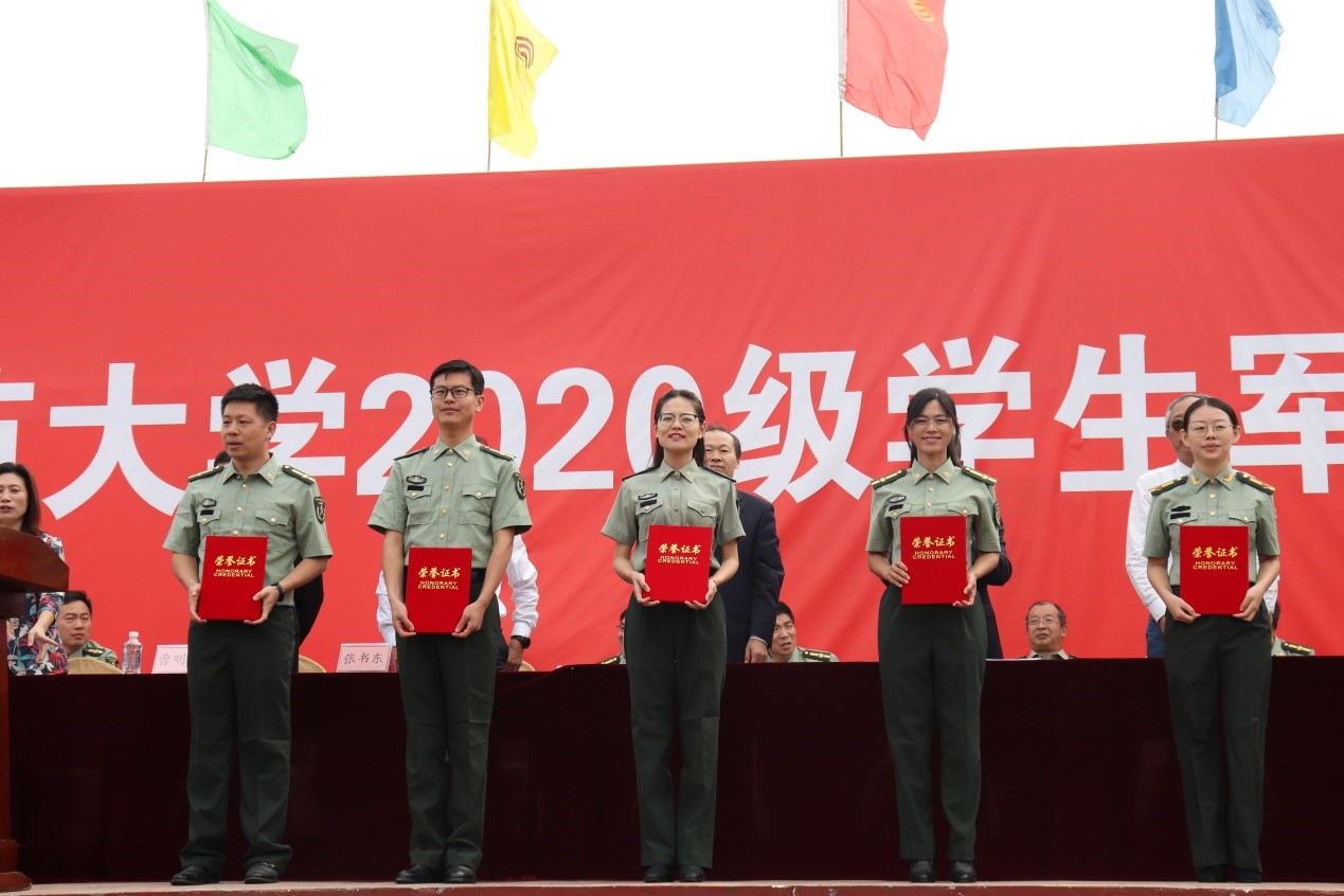 经过大家的共同努力,为期十三天的军事训练顺利落下帷幕。10月3日,2020级军训成果汇报暨总结表彰大会于西操场召开,学校领导、各学院党委书记及党委副书记出席会议,各学院学生工作教师及2020级新生参加活动。