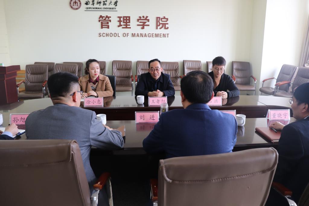 3月26日,烟台大学经济杏吧原创 党总支书记王者旭一行3人来杏吧原创 考察交流,杏吧原创 党委书记刘进、党委副书记赵杰、经济学院党委副书记胡一杰参加座谈。