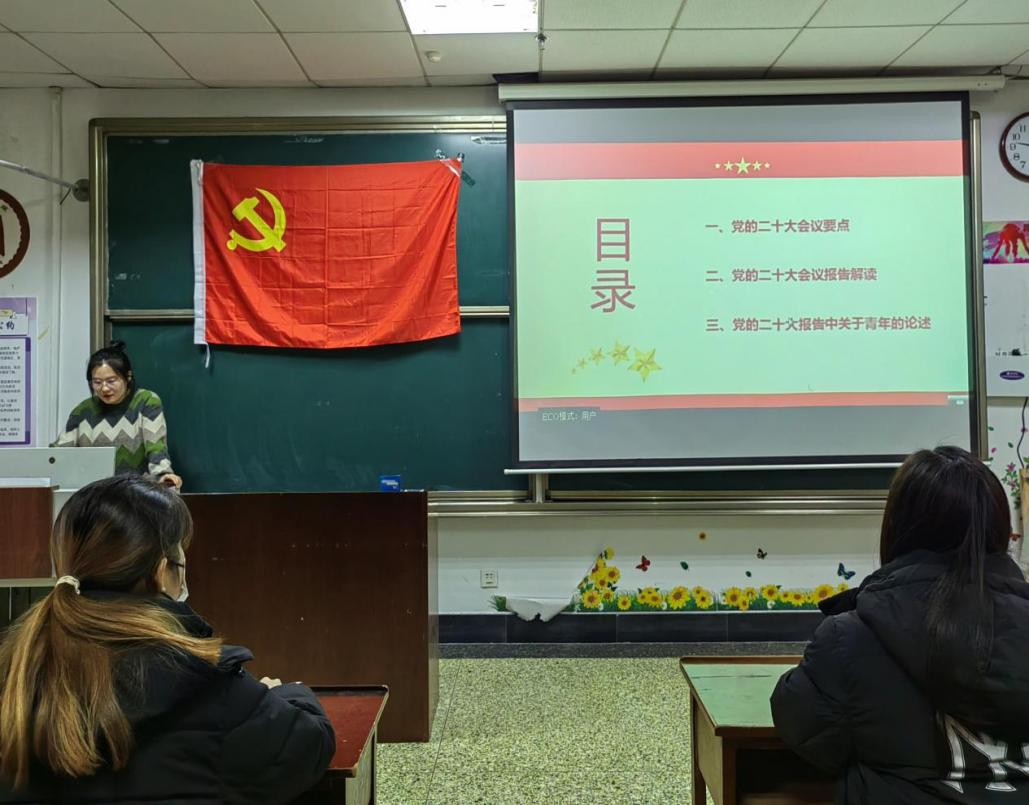 会上,董世超从党的二十大会议重点、党的二十大会议报告解读和党的二十大报告中关于青年的论述三方面带领学生党员深入学习党的二十大精神。