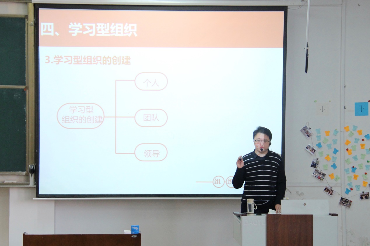 课堂伊始,刘老师通过对秦池集团由兴转衰的案例引出本节课的主要内容——学习型组织。在教学过程中,刘老师用诙谐幽默的例子“洞穴人的影子”与实例“新加坡警察部队创建学习型组织”对学习型组织进行了详细的讲解,内容生动活泼,引人入胜。刘老师教学内容活泼有趣,教学问题的设置具有针对性,展现了其将复杂的专业知识用浅显易懂的语言、清晰明了的逻辑进行教学的能力。